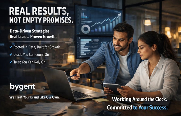 At Bygent, every strategy is rooted in data and built to deliver real leads that fuel long-term growth. We believe trust is something you protect, not break. That’s why we treat your brand like our own—working day and night with the same commitment you bring as a founder.